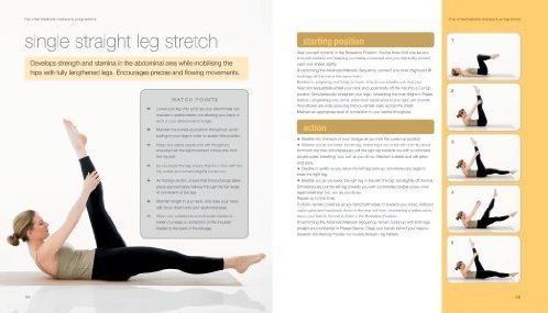 É considerado a "bíblia" do pilates por conter uma quantidade enorme de técnicas bem ilustradas. O papel é fotográfico de alta qualidade e todo o livro é COLORIDO! Cobre centenas de exercícios no solo, e com bolas, elástico e discos (veja ilustrações abaixo).